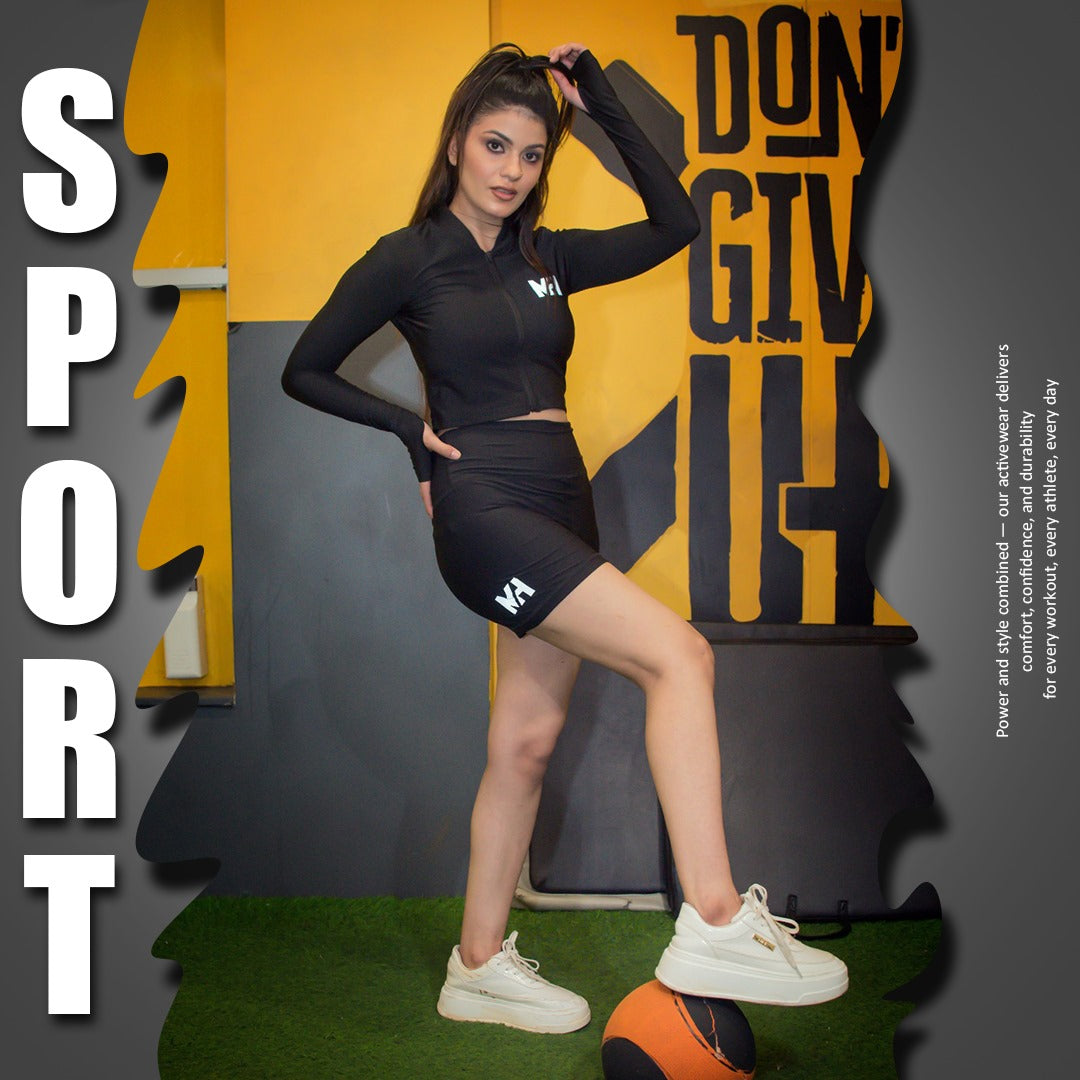 Our activewear is made from high-quality, breathable, and stretchable fabric a blend of polyester and spandex designed for comfort, flexibility, and performance during workouts.